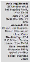 On 26 October 1992, the investigating officer raided Sri Chand’s house and finding him and Jai Prakash inside arrested them. He also seized bloodstained clothes belonging to the two. The other two accused Samir and Dharambir subsequently surrendered in court.