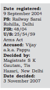 According to the prosecution, on 9 September 2004 at about 8:30pm Head Constable Brij PalScreen Shot 2015-12-17 at 11.31.05 AM Singh and Constable Ranvir received information that the accused was sitting at the eastern side of platform no. 4/5 of the Sarai Rohilla Railway Station in Delhi with a button-operated knife and that he might commit some offence. On this information, they reportedly requested four to five passengers to join them as witnesses but none of them obliged.
